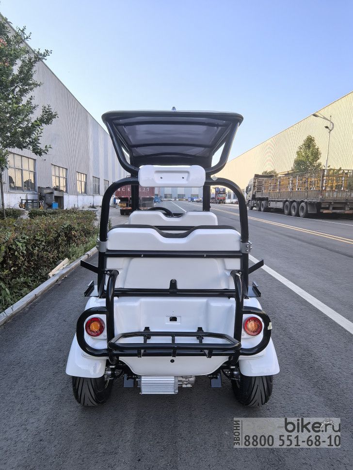 Четырехместный гольфкар представляет собой электрическое транспортное средство, спроектированное для перевозки четырех пассажиров, часто используется на гольф-полях, в коммерческих и индустриальных сферах, таких как курорты, заводы, склады, аэропорты, парки и другие места, где требуется эффективный и экологичный способ перевозки пассажиров. Электрические гольфкары считаются более экологичными, так как не выбрасывают вредных газов и имеют низкий уровень шума, что особенно важно в рабочих местах, где шум может быть проблемой.